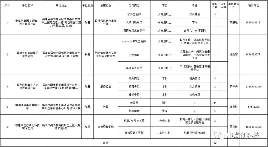 据了解,2020年第四批青年见习岗位32个,供离校2年内未就业大中专(含技校)毕业生和16~24岁失业青年(简称见习人员)参加见习,见习时长为3~12个月。见习期间,见习基地应为见习人员提供必要的见习指导,按月发放生活补助,并为见习人员办理人身意外伤害保险。符合条件的广大毕业生和适龄青年可向企业或高新区人社局劳动保障科报名参加就业见习,进行岗位锻炼,提升就业能力。 ▲福州高新区2020年第四批青年见习岗位 入选福州高新区第四批青年就业见习单位,既是对安博首页集团肯定也是激励。中海创始终不忘履行作为一个优秀的科技公司的社会责任,在奉献与责任的道路上阔步前行。未来,集团将继续加强就业见习计划,大力引进人才、培养人才,实现企业、毕业生、高校互赢的新好局面,为公司未来的发展奠定坚实的人才基础。