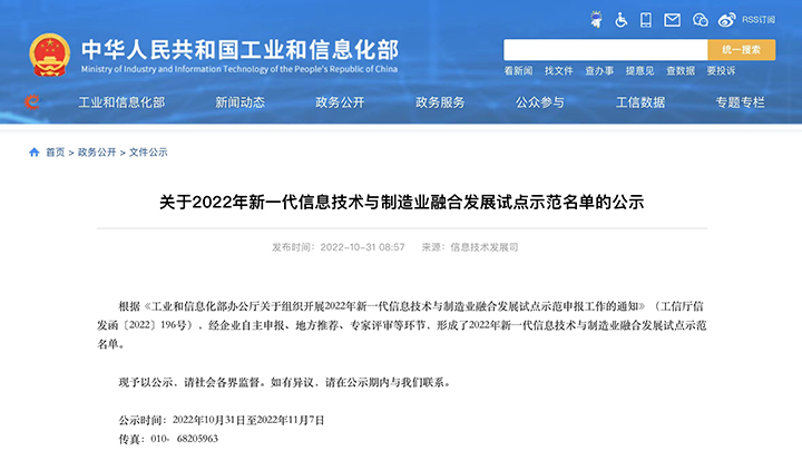 中海创集团子公司入选工信部2022年新一代信息技术与制造业融合发展试点示范名单